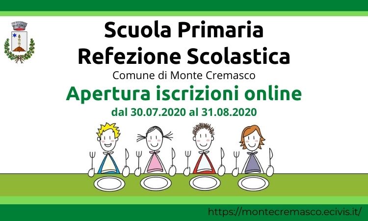 A partire del 30 luglio al 31 agosto 2020 sono aperte le iscrizioni al servizio di “Refezione Scolastica a.s. 2020/2021”,per la scuola PRIMARIA con nuove modalità.