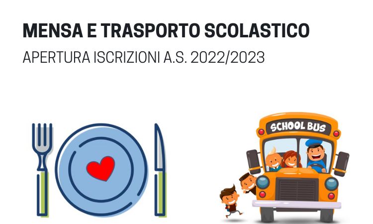 DA LUNEDI' 01 AGOSTO A MERCOLEDI' 31 AGOSTO 2022 sono aperte le iscrizioni per l'anno scolastico 2022/2023 per il servizio mensa scuola dell'infanzia e primaria e trasporto scolastico scuola secondaria.