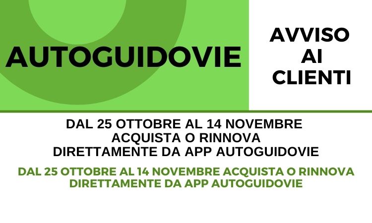 Dal 25 Ottobre al 14 Novembre acquista o rinnova direttamente da APP Autoguidovie