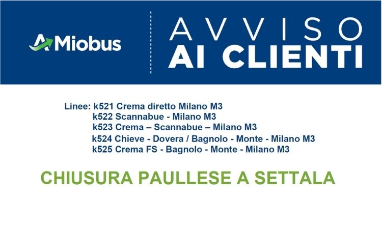 Avviso Autoguidovie - Chiusura Paullese a Settala