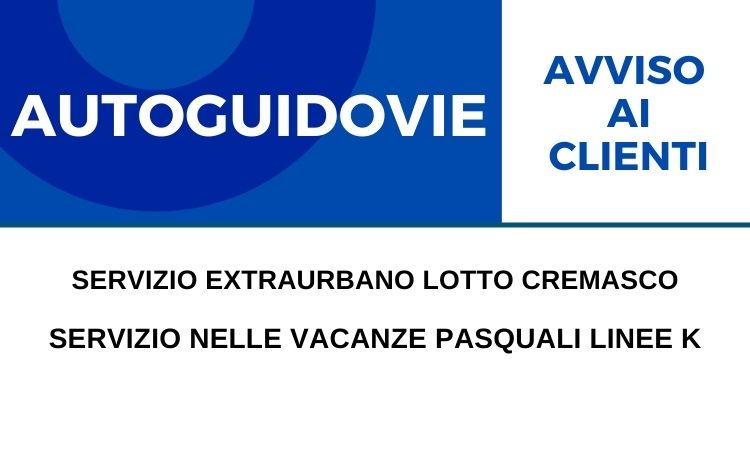 SERVIZIO EXTRAURBANO LOTTO CREMASCO - Servizio nelle vacanze pasquali linee K