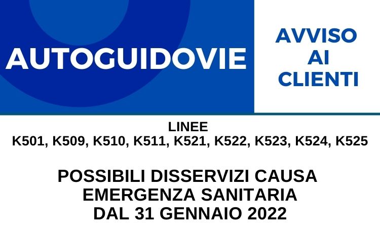 POSSIBILI DISSERVIZI CAUSA EMERGENZA SANITARIA - LINEE K501, K509, K510, K511, K521, K522, K523, K524, K525