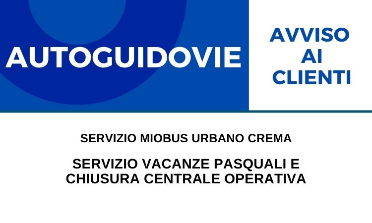 SERVIZIO VACANZE PASQUALI E CHIUSURA CENTRALE OPERATIVA - Servizio MioBus Urbano Crema