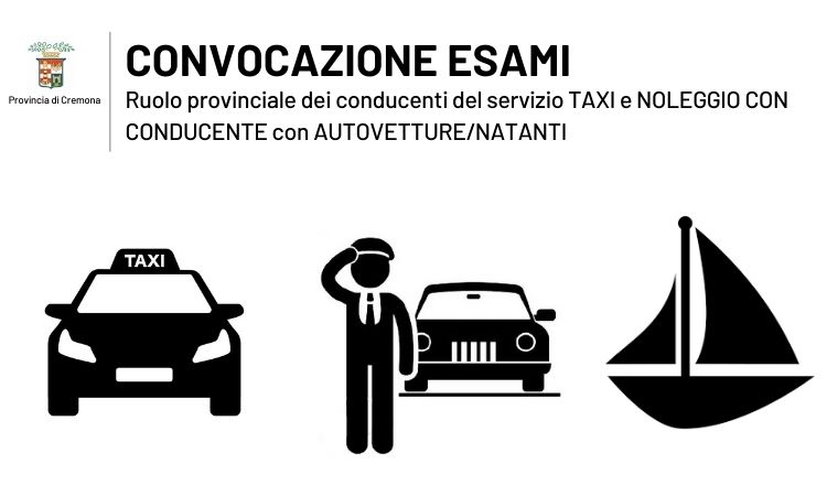CONVOCAZIONE ESAMI - Ruolo provinciale dei conducenti del servizio taxi e noleggio con conducente