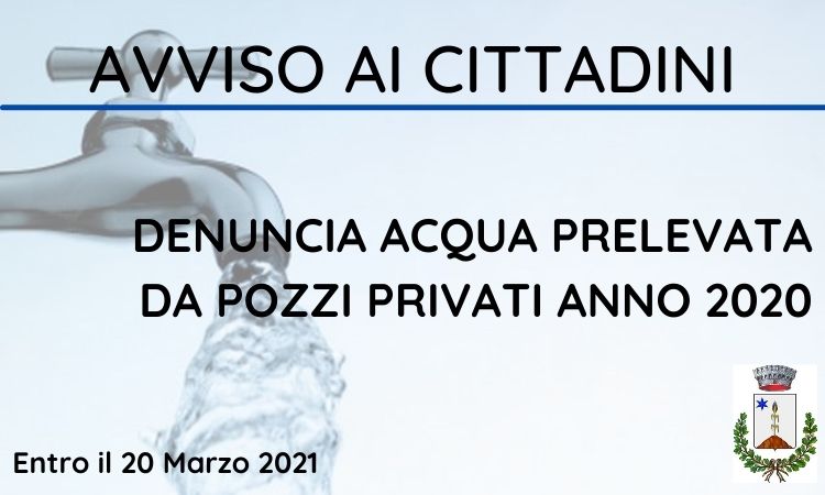 Si avvisano i cittadini: Denuncia acqua prelevata da pozzi privati anno 2020
