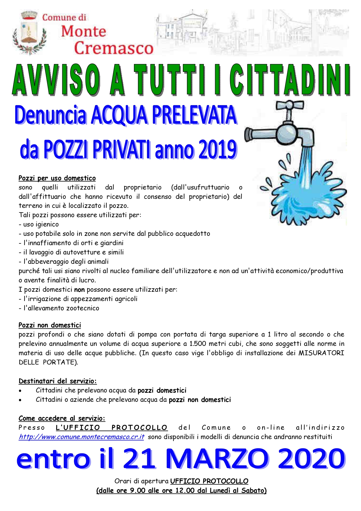 Share button Condividi Modulistica Pozzi Tassonomia argomenti: AcquaData Articolo: Giovedì, 30 Gennaio, 2020 - 14:34Corpo vedi gli allegati Galleria ContattiUfficio tecnicoAllegati Manifesto pozzi (170.02 KB) Modulo pozzi (30.4 KB) Modulo denuncia pozzi Padania Acque (899.08 KB)