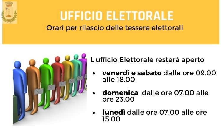 Il Sindaco invita la cittadinanza a verificare la disponibilità della Tessera Elettorale e la presenza di spazi liberi per l'apposizione del bollo di sezione.